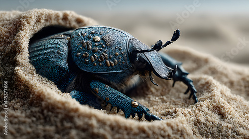 A sand dune beetle burrowing in the hot desert sand.