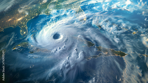 A satellite image reveals the immense scale of a hurricane bearing down on land