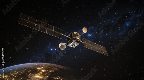 A satellite orbiting the Earth with stars in the background.