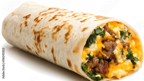 A savory breakfast burrito filled with scrambled eggs, sausage, and cheese