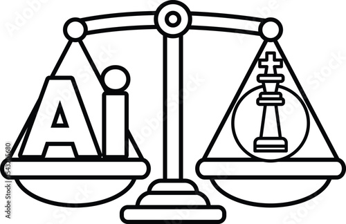 A scale with the letters AI on one side and a chess piece on the other