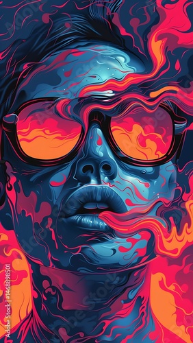 A scary halloween demon woman with a red face and black skull makeup wearing a mask