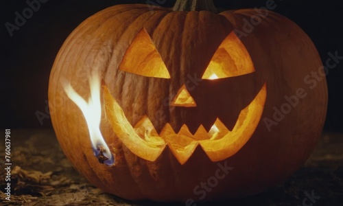 A scary pumpkin lantern with evil grin for Halloween.