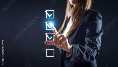 A scene where a man in a suit selects from a virtual checklist floating in the air