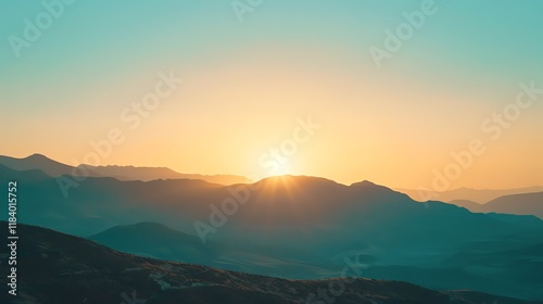 A scenic view of a valley in the mountains at sunrise with fog rolling through the trees.