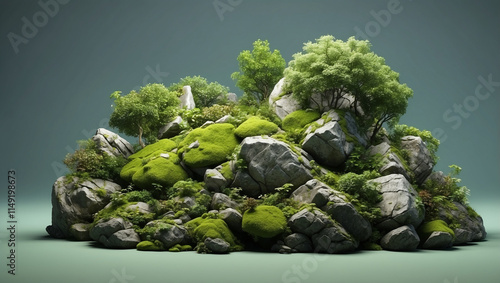 A Scenic View of Large Rocks Surrounded by Lush Foliage in Nature