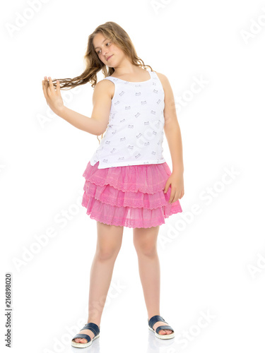 A school girl with long hair.