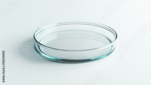 A scientific petri dish displayed at eye level from the side, isolated on a clean white surface