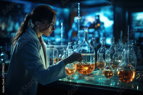 A scientist conducting experiments in a laboratory, illustrating the pursuit of knowledge and breakthroughs in research. Generative Ai.