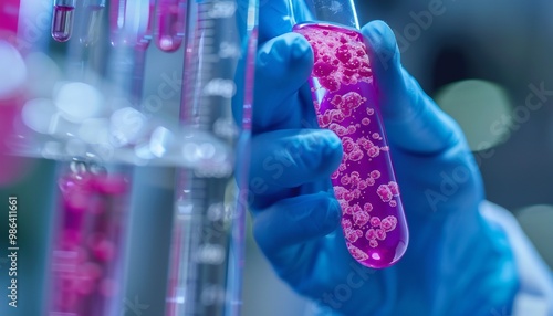 A scientist is analyzing a bacterial sample in a test tube, contributing to healthcare research