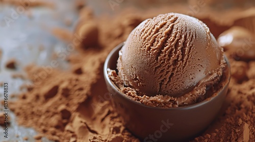 A scoop of rich chocolate ice cream with a sprinkle of cocoa powder