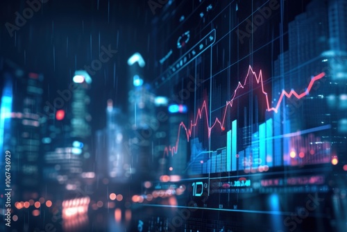 A screen with a graph backgrounds chart city.