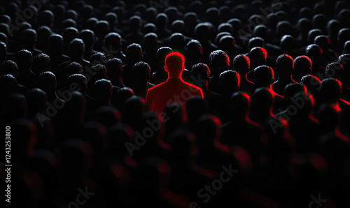 A Sea of Matte Black Silhouettes with a Bold Red Figure Under Spotlight, Highlighting the Danger of Insider Threats in Data Environments