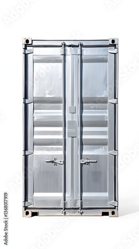 A Sealed Silver Metal Shipping Container with Ample Copy Space for Text or Graphics on a White Background Ideal for Secure Storage Solutions