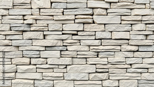 A seamless background texture of a contemporary natural stone wall made from stacked rectangular blocks in light tones