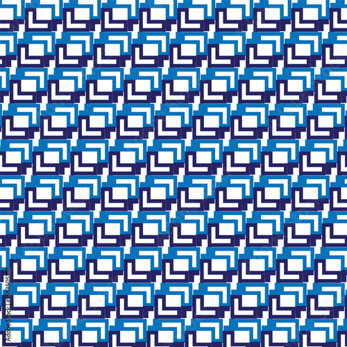 A seamless geometric blue square pattern with a pixelated mosaic design creates a light and colorful texture for a decorative wallpaper