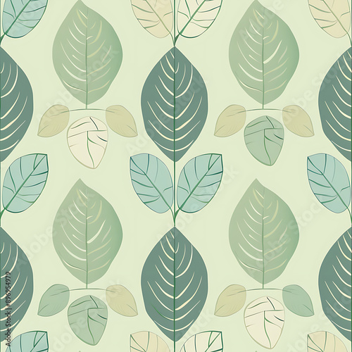 A seamless pattern featuring pastel light green leaves on a soft background. Perfect for nature-inspired designs, wallpapers, and textile prints