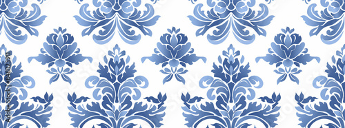 A seamless pattern of blue damask on a white background, in the style of seamless.