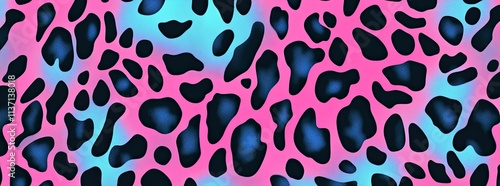 A seamless pattern of leopard print, neon pink and blue colors, vector illustration, flat design, pastel color palette