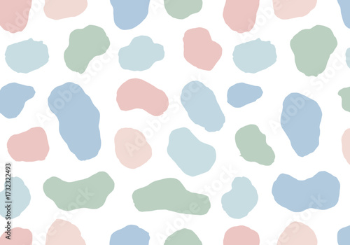 A seamless pattern of pastel blobs in pink blue green on a white background