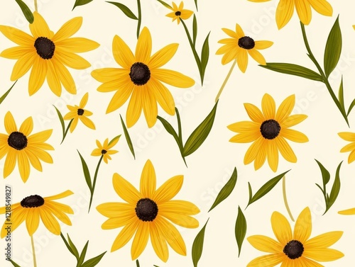 A Seamless Pattern of Susans with on a Light Yellow Background