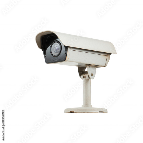 A security camera positioned to monitor an area, featuring a sleek and modern design with a mount