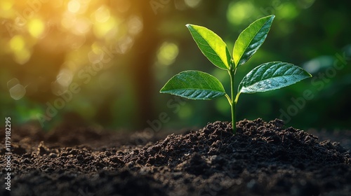 A Seedling's Journey: New Life Emerging from the Earth in the Warm Sunlight