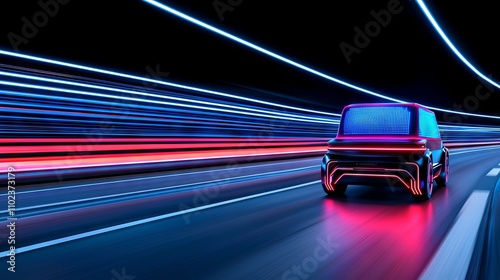 A self-driving truck navigates the highway using a cutting-edge interface.