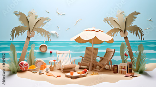 A serene 3D beach scene featuring a beautifully crafted picnic set amid tranquil coastal ambiance.