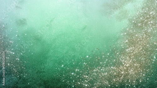 A serene, abstract image featuring a blend of green and shimmering particles, evoking a tranquil underwater or ethereal atmosphere, blurred bokeh background