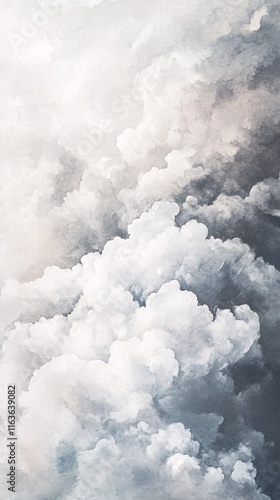 A serene abstract representation of soft clouds in shades of white and grey, creating a tranquil and dreamy atmosphere.