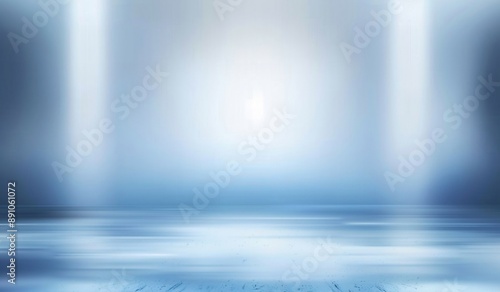 A serene, abstract scene with a gradient of soft blue tones. Light reflections create a calm, ethereal atmosphere, reminiscent of water or a tranquil sky.