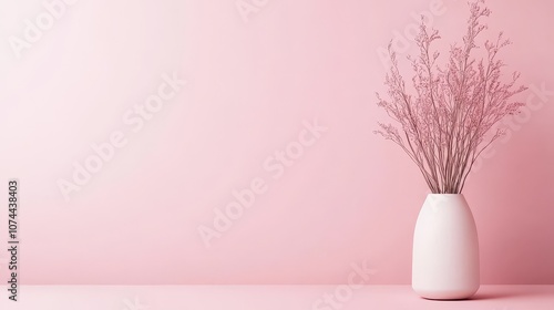 A serene arrangement of dried flowers in a white vase against a soft pink background, perfect for adding a touch of elegance.