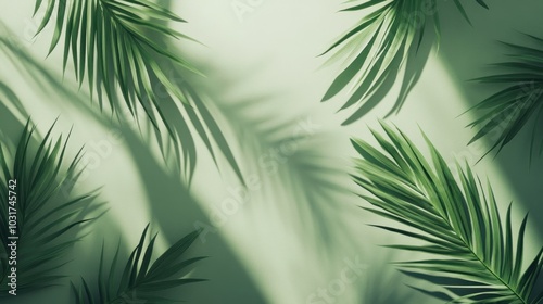A serene arrangement of green palm leaves casting shadows on a light background.