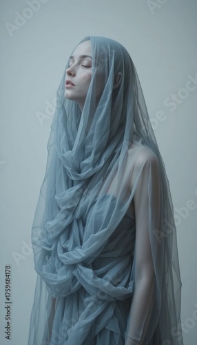 A serene moment captured in soft hues, conveying tranquility and grace in fabric