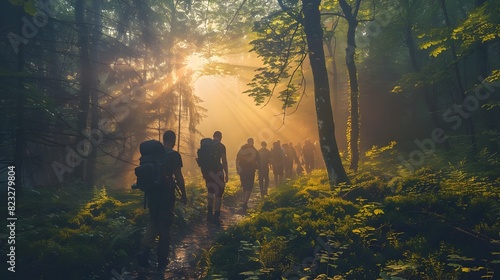 A Serene Outdoor Retreat with a Leader Guiding a Team Through a Trust Building Exercise Promoting Teamwork and Personal Growth in Nature