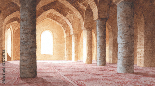 A Serene Overview of an Architectural Interior with Arched Ceilings and Natural Light Emphasizing Warm Colors and InvitingTextures in Historical Design
