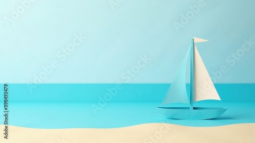 A serene paper sailboat on a tranquil ocean scene evokes feelings of peace and escape