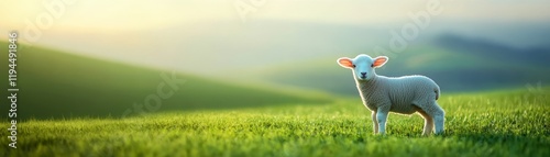 A serene sheep grazing peacefully in lush green field on sunny day tranquil