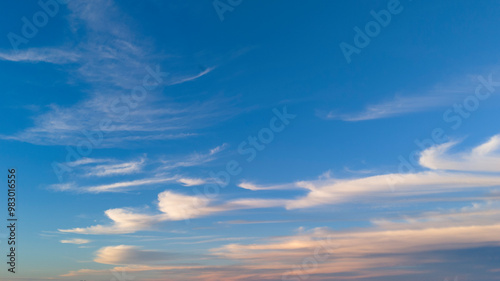 A serene sky showcasing soft clouds and a vibrant blue backdrop. Perfect for nature lovers and anyone seeking tranquility.