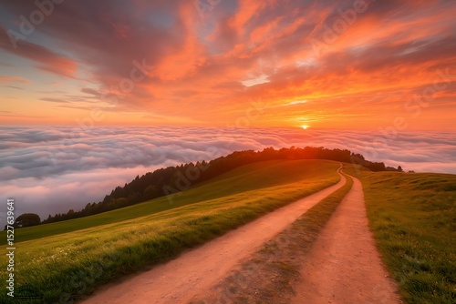A Serene Sunset Over Rolling Hills and a Misty Valley