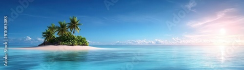 A serene tropical island with lush palms surrounded by clear turquoise water under a bright blue sky, perfect for relaxation.
