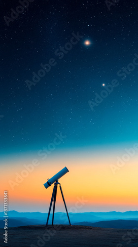 A serene twilight scene featuring a telescope aimed at a starry sky, capturing the beauty of the cosmos and inviting exploration of the universe.