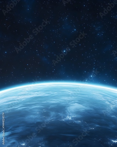 A serene, twilight view of Earth from space, showcasing a luminous atmospheric glow against the backdrop of a star-studded cosmos