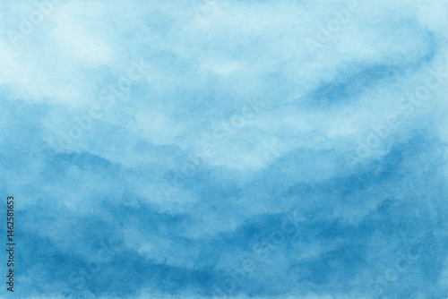 A serene watercolor depiction of a clear blue sky, capturing the soft, gentle clouds that create a calming atmosphere. Ideal for backgrounds, designs, and tranquil settings.