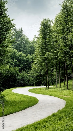 A serene winding path through lush greenery, inviting tranquility and nature's beauty in a peaceful outdoor environment.
