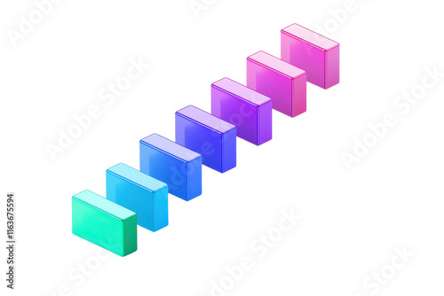 A series of colorful, three-dimensional blocks arranged in a gradient pattern, showcasing vibrant hues from green to pink.