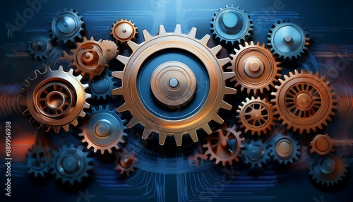 A series of gears interlinked in a seamless line, emphasizing the mechanical details, with a