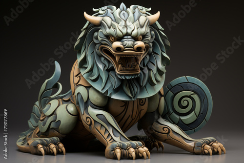 a serpentine humanoid wood sculpture that stylistically resembles Native American and ancient Chinese art