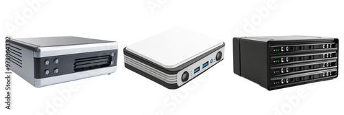A set of NAS Network Attached Storage Isolated in a Transparent Background